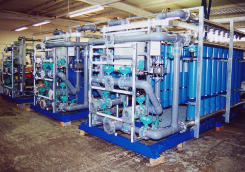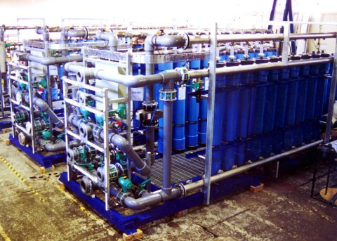 The system’s Directflow process is designed to provide greater filtration efficiency than the traditional cross-flow processes used in other membrane systems because a greater percentage of the feed water permeates through its hydrophilic membrane. The Directflow process increases the finished water recovery rate by using a "dead-end" design. This design eliminates the reject loop and forces all of the water through the membrane’s hollow fiber lumen, forcing the filtrate to exit through a central permeate carrier. Eliminating the recirculation loop increases the system’s finished water recovery rate and decreases operating costs. This design eliminates the piping valve pumps and other ancillary equipment associated with cross-flow recirculation.