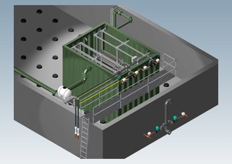 TITAN MBR MEM-BOX™ features a compact design that facilitates insertion into the existing plant with minimal changes to the existing plant structure while doubling plant capacity. It is designed to insert into a plant’s existing aeration basin (concrete or steel), making it more cost-effective than designing and constructing a new plant.